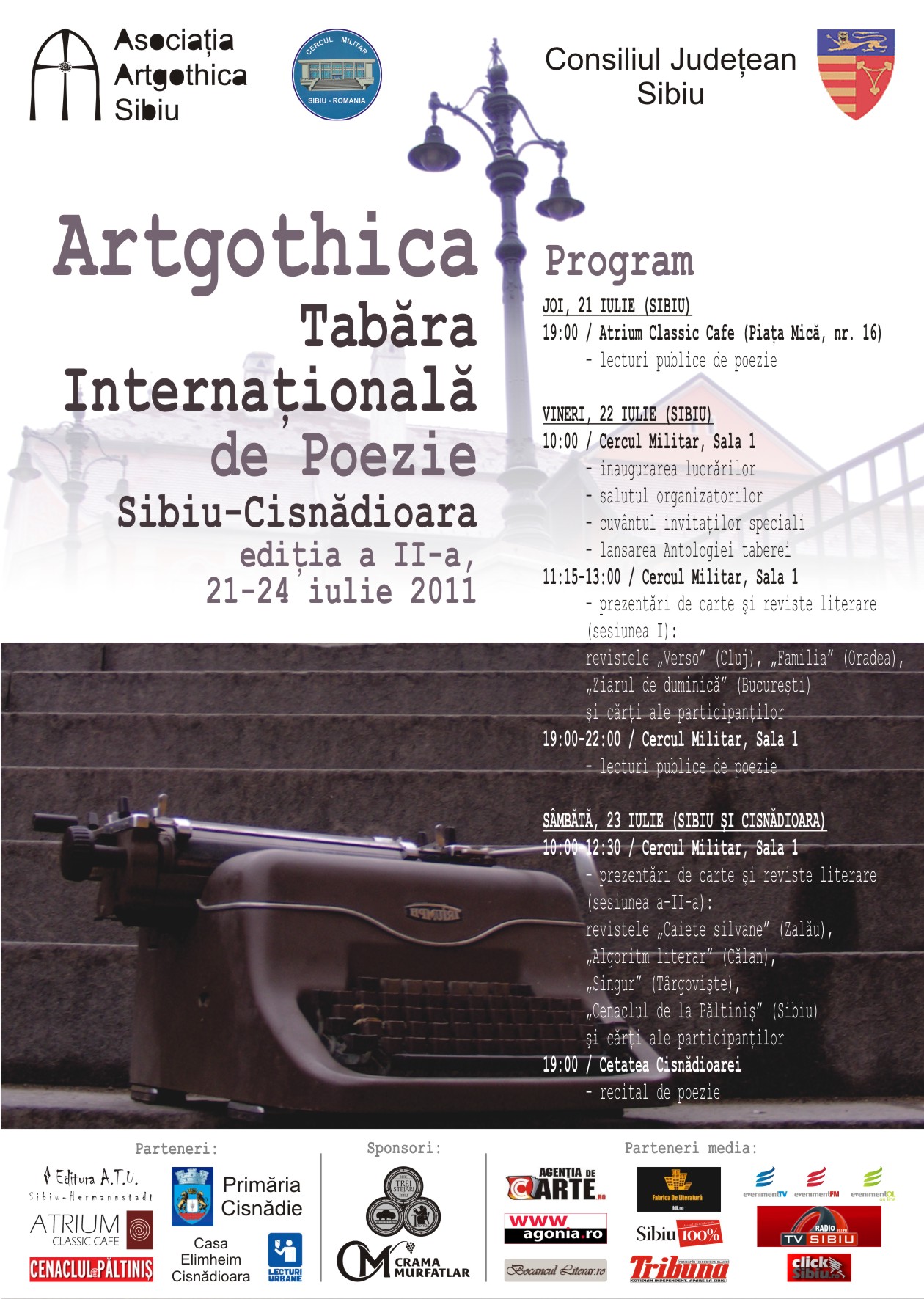 În perioada 21-24 iulie, va avea loc „Artgothica – Tabăra Internaţională de Poezie Sibiu-Cisnădioara”, ediţia a II-a. Evenimentul este organizat de Asociaţia Artgothica Sibiu în colaborare cu Cercul Militar Sibiu, cu sprijinul Consiliului Judeţean Sibiu.