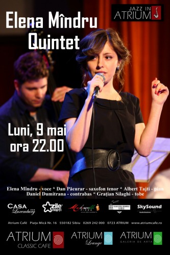 Atrium Classic Cafe vă invită la concert alături de ELENA MÎNDRU QUINTET luni seara, începând cu ora 22.00. Cu idei proaspete și originale, formația Elena Mîndru Quintet aduce pe scena jazz-ului românesc piese din repertoriul standard de jazz, melodii tradiționale românești ”jazzificate” și compoziții proprii printr-un sound personal, cu influențe de funk, soul sau latino.