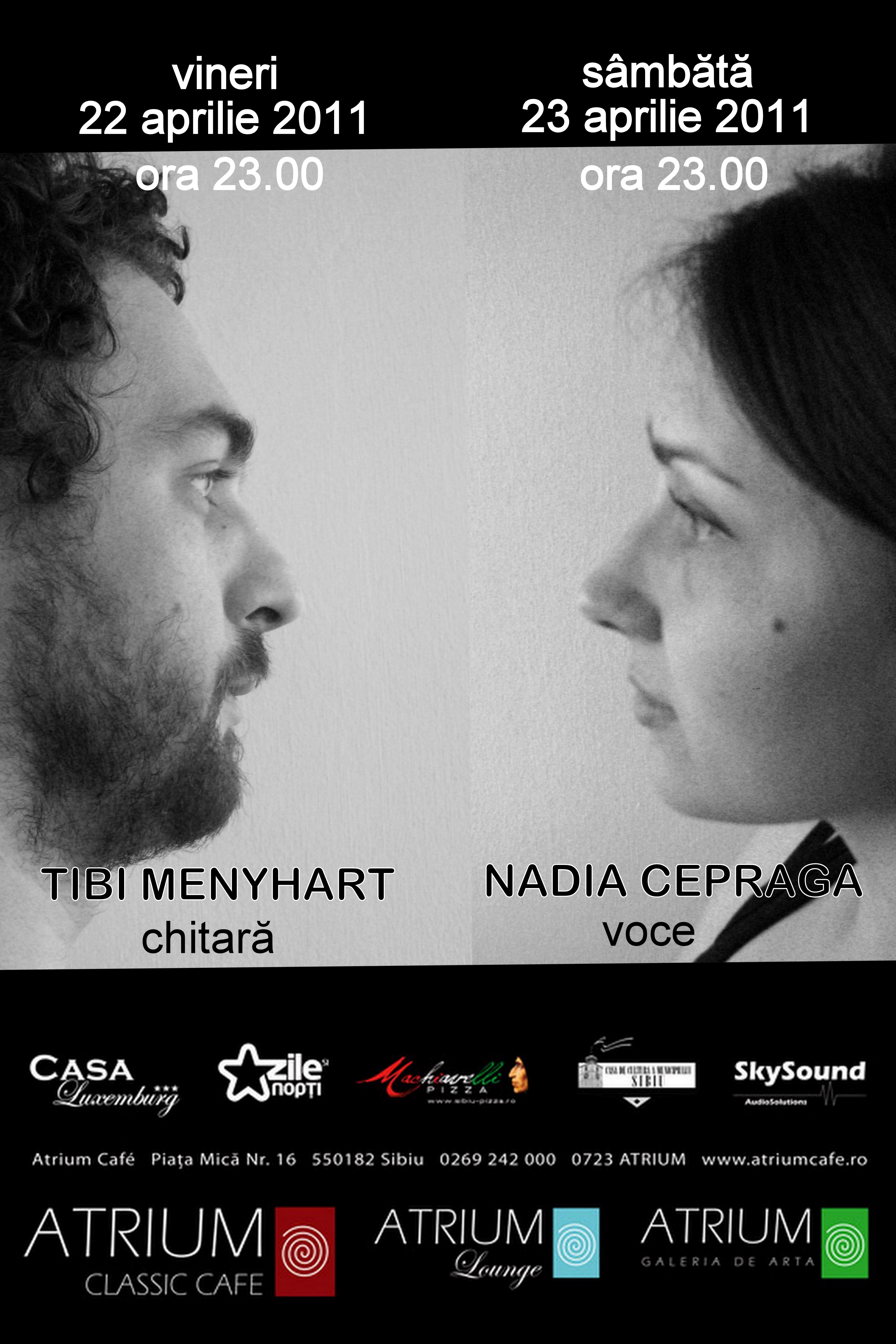 Atrium Classic Cafe vă invită la concerte live vineri şi sâmbătă, 22-23 aprilie, începând cu ora 23.00. Tibi Menyhart (chitară) şi Nadia Cepraga (voce) sunt invitaţii noştri din Cluj- Napoca.