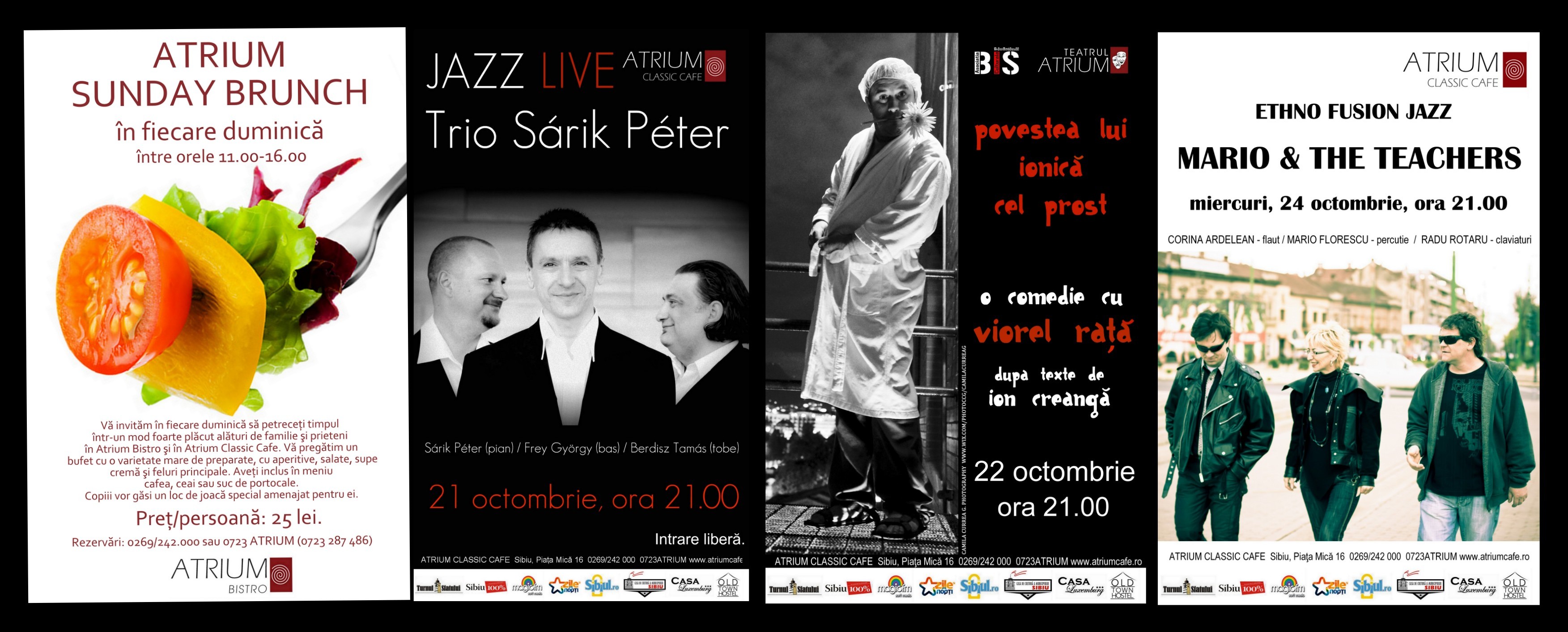 În perioada următoare vă pregătim seri speciale de jazz, începem stagiunea de teatru de cafenea, iar în fiecare duminică vă aşteptăm să luaţi micul-dejun şi prânzul la Atrium Sunday Brunch.