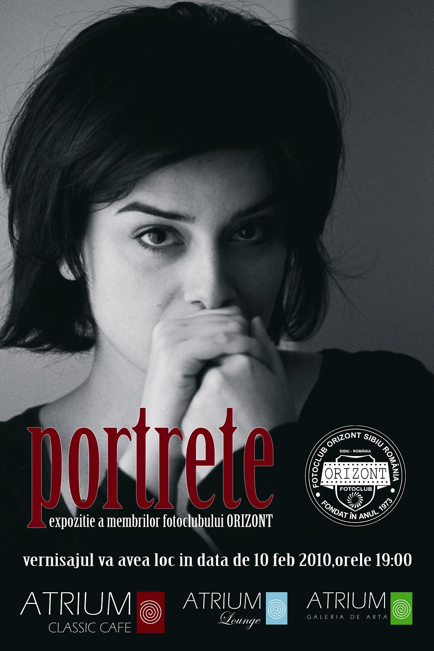 ATRIUM GALERIA DE ARTĂ vă invită începând de miercuri, 10 februarie până în 3 martie, la expoziţia “Portrete” a fotoclubului ORIZONT Sibiu, care cuprinde un număr de 34 de fotografii realizate de membrii acestuia.