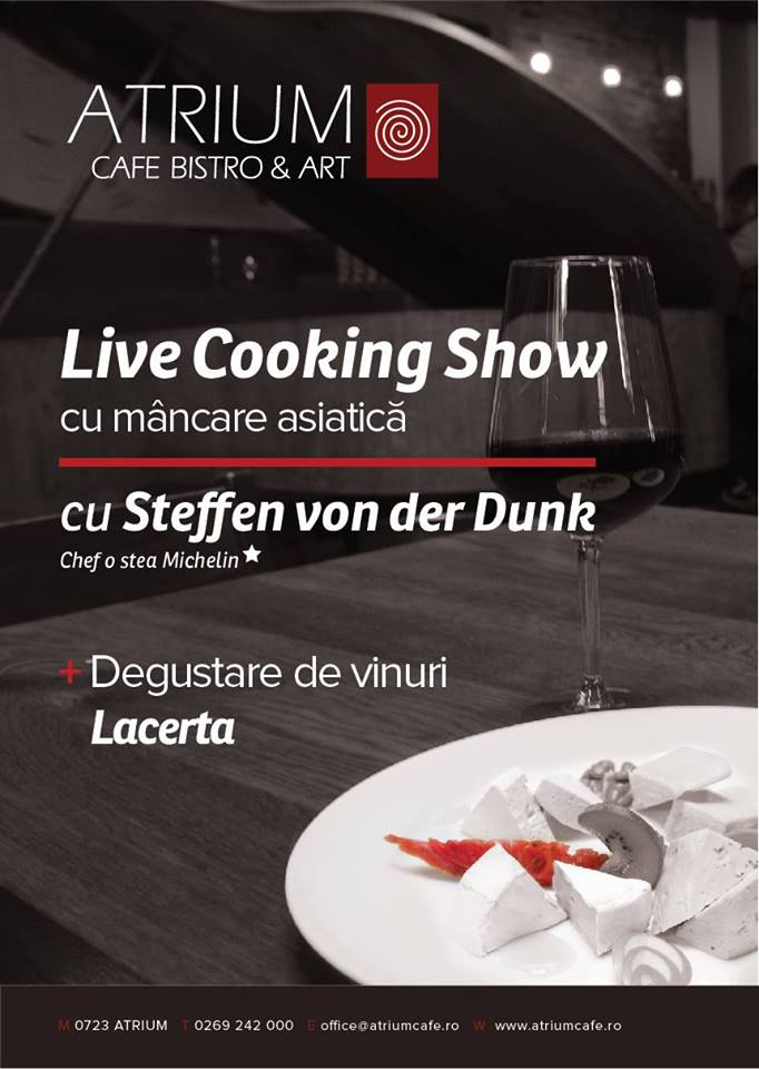 Atrium Cafe Bistro & Art vă invită Miercuri 27.11.2013 , orele 20:00 la Live cooking show cu chef Steffen von der Dunk – passionate cook , acompaniat de vinuri deosebite aduse de crama Jidvei , pentru a menţine atmosfera! Vă aşteptăm să vă delectati cu muzică bună, mâncăruri rafinate şi […]