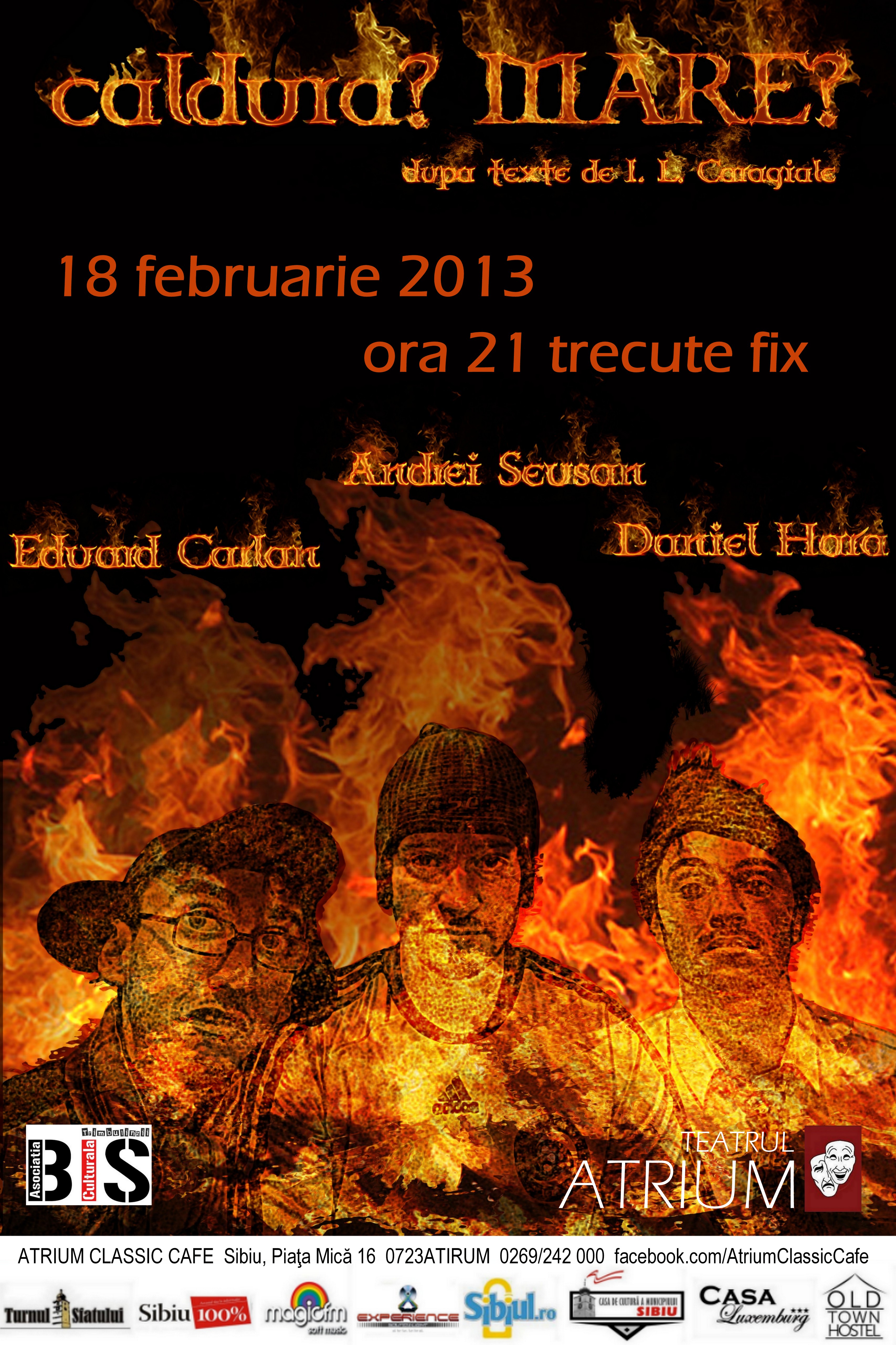 Lume! Lume! Luni decuseară, la orele 9 trecute de fix, vă invităm la o comedie eveniment – Căldură? MARE?, un spectacol modern după texte de I.L.Caragiale.