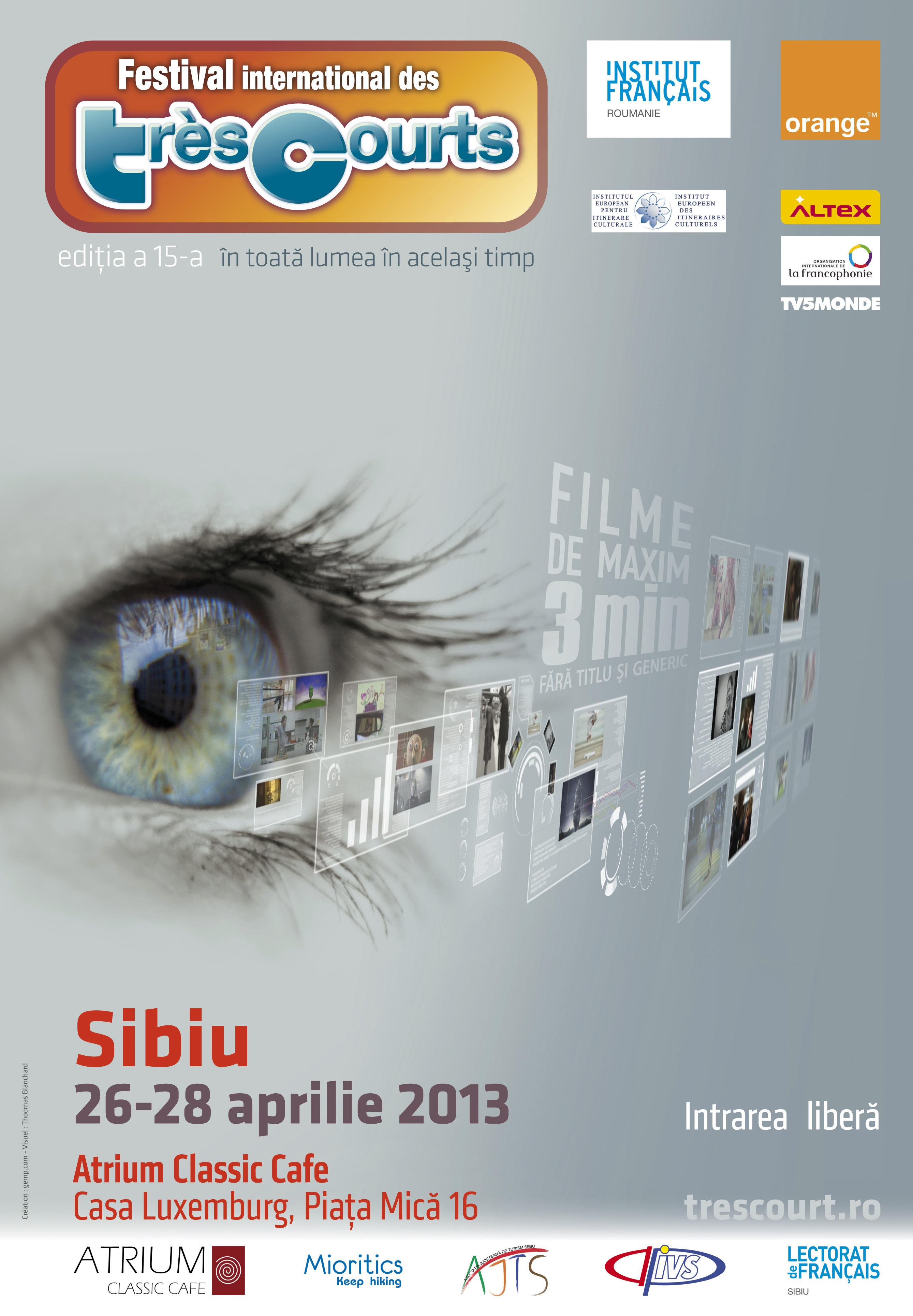 Unic în lume, Festivalul Internaţional de foarte scurt metraj Très Courts prezintă şi pune în competiţie în toate colţurile planetei filme de maxim 3 minute, realizate de creatori confirmaţi sau de începători. Din 25 aprilie în 5 mai 2013, 100 de oraşe din 25 de ţări, partenere ale Très Courts […]