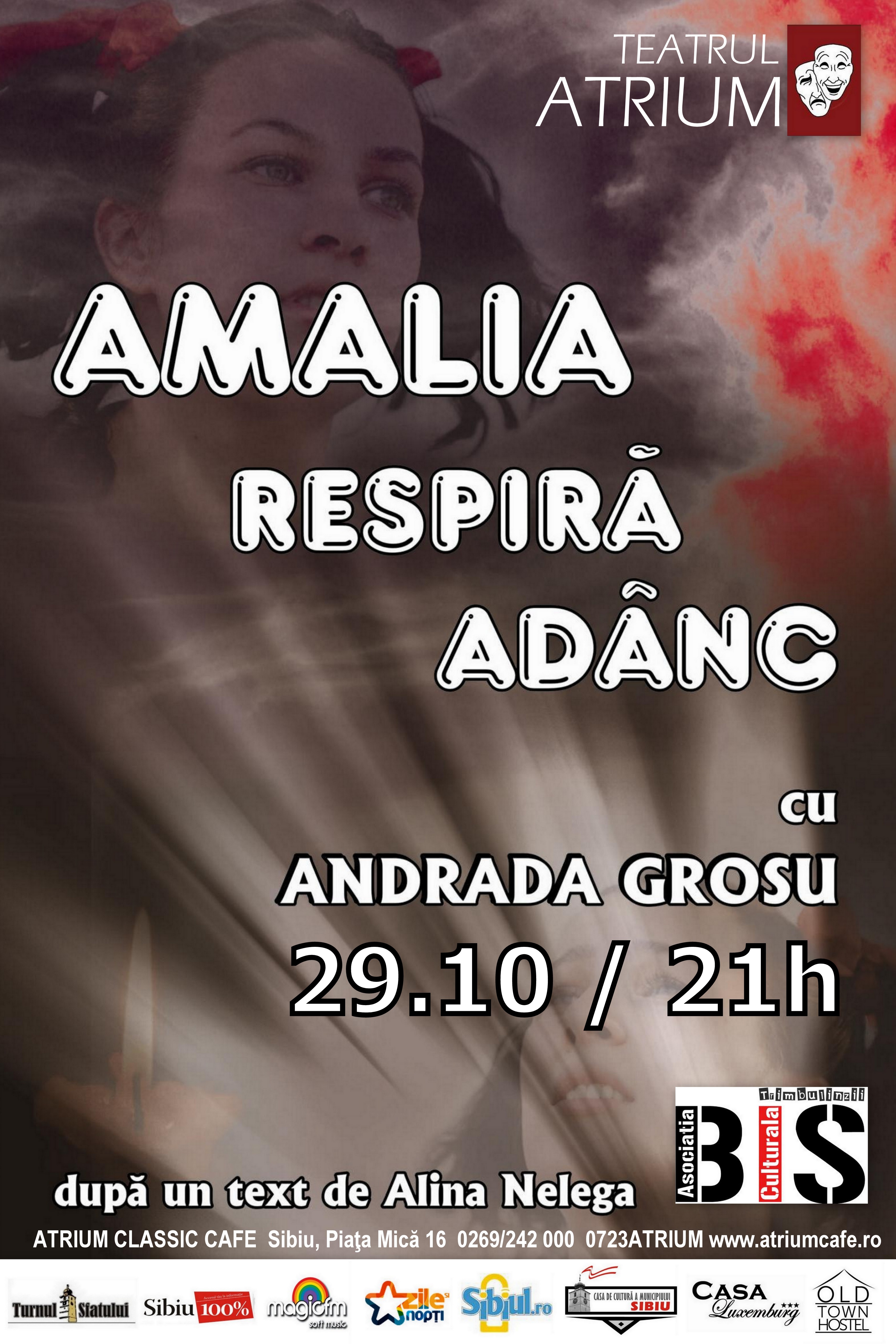 ATRIUM CLASSIC CAFE vă așteaptă luni, 29 octombrie, ora 21:00, la o întâlnire a sufletelor. „AMALIA RESPIRĂ ADÂNC” o respiraţie care face viaţa să se dăruiască propriului sfârşit. Aflată în interpretarea Andradei Grosu, Amalia ne dezvăluie o lume. O lume interioară al cărei edificiu este la limita realităţii. Realitatea Amaliei, […]