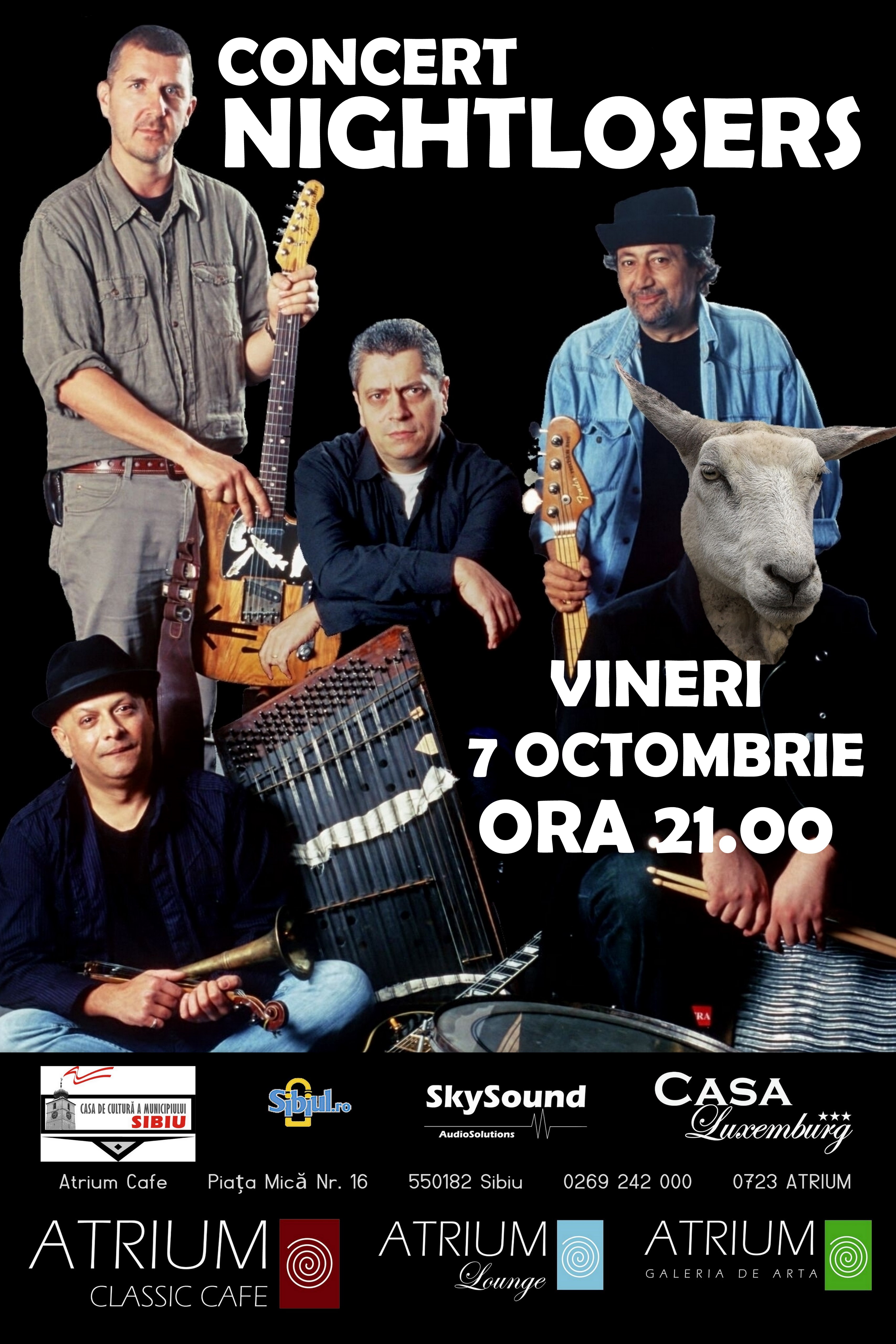 Vă invităm în Atrium Classic Cafe la un concert extraordinar alături de NIGHTLOSERS, vineri, 7 octombrie, ora 21.00.