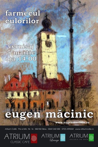 Atrium Classic Cafe vă invită sâmbătă, 5 martie, ora 14, la vernisajul expoziţiei de pictură „Farmecul culorilor” a pictorului Eugen Măcinic.
