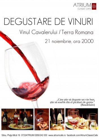 Noi vă invităm în Atrium Classic Cafe să degustaţi vinuri bune, vinuri de excepţie de la S.E.R.V.E. (Societatea Euro Română de Vinuri de Excepţie).