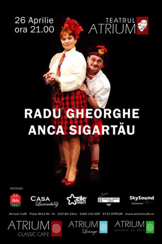 Întâlnirea dintre actorul Radu Gheorghe şi actriţa Anca Sigartău la care veţi asista, este o întâlnire rară, pe care ar fi păcat să o rataţi. Amândoi au trăit o perioadă destul de lungă în Statele Unite şi au acumulat o experienţă artistică şi umană inestimabilă. Ei ne vor împărtăşi din experienţa lor într-un show muzical, în care sigur veţi sesiza influenţele rimurilor mai vechi şi mai noi ale civilizaţiei lumii libere.