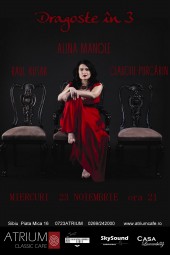 Vă aşteptăm la concertul de lansare al albumului “Dragoste în 3” miercuri, 23 noiembrie 2011, ora 21.00. Biletul de intrare este 25 lei. Rezervări se pot face la numerele de telefon 0269/242 000 sau 0723 ATRIUM.