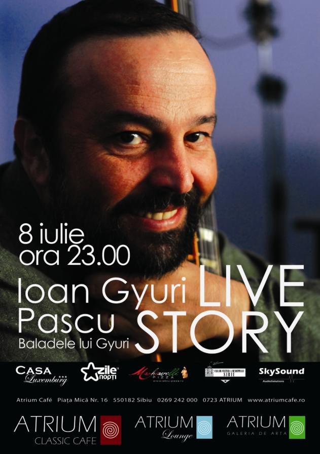 Vineri, 8 iulie 2011, începând cu ora 23.00, sunteţi invitaţi la spectacolul Ioan Gyuri Pascu LIVE STORY în Atrium Classic Cafe. Preţul unui bilet este de 25 lei. Rezervări se pot face la numerele de telefon 0269/242 000 sau 0723 ATRIUM.