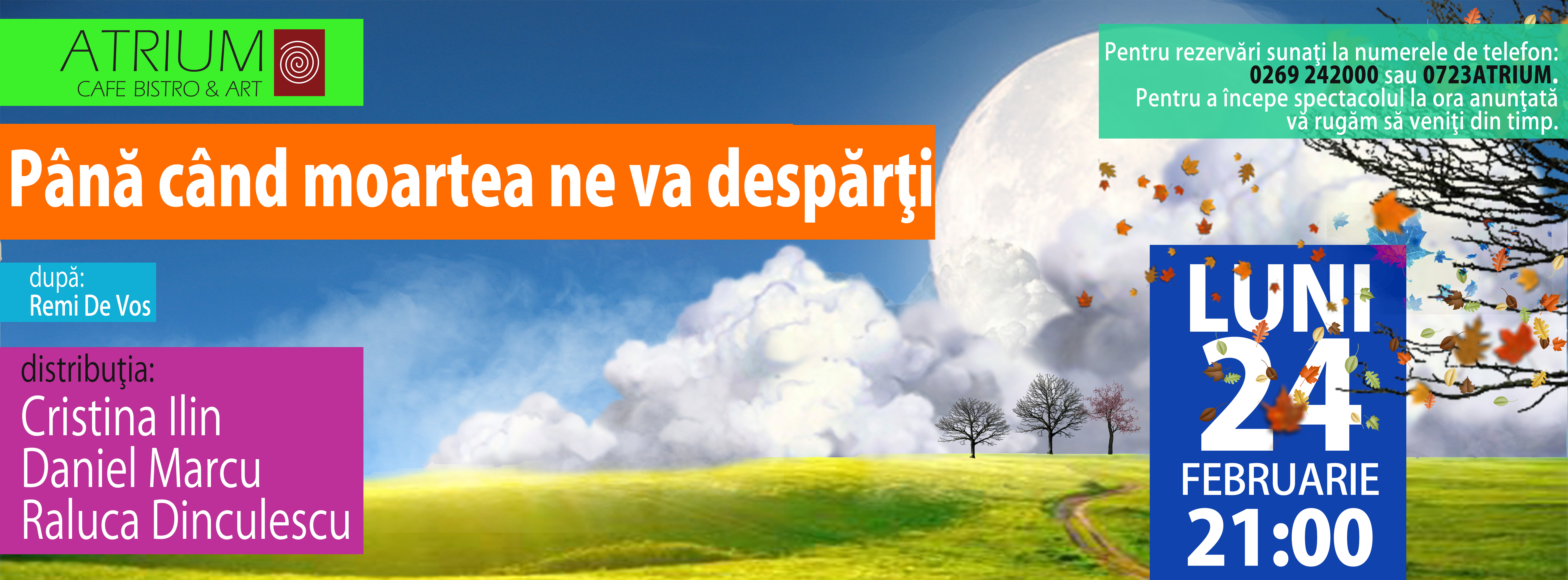 Luni 24 februarie 2014 de la ora 21:00 vă așteptăm în Atrium Cafe Bistro & Art la comedia „Până când moartea ne va despărți”