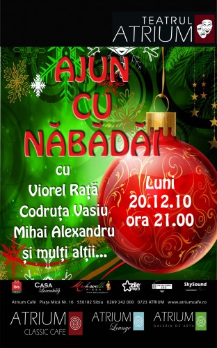 „Ajun cu năbădăi”- o comedie spumoasă cu Viorel Raţă, Codruţa Vasiu şi Mihai Alexandru, şi cu mulţi, mulţi alţii. Biletul de intrare este 10 lei. Rezervari se pot face la numerele de telefon 0269/242 000 sau 0723 ATRIUM.