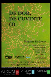 „De dor, de cuvinte ( I ) „, un spectacol conceput anume pentru Atrium Classic Cafe, în a cărui distribuţie, alături de actorul Bogdan Sărătean, vom regăsi studenţi-actori din trei centre universitare din ţară (Sibiu, Cluj, Bucureşti ).