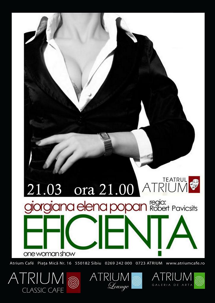 Atrium Classic Cafe vă invită la un spectacol inedit, un one-woman-show, cu Giorgiana Elena Popan: EFICIENŢĂ.